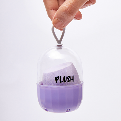 Our makeup blender doesn’t require an additional makeup bag because it comes with its own lilac pocket!