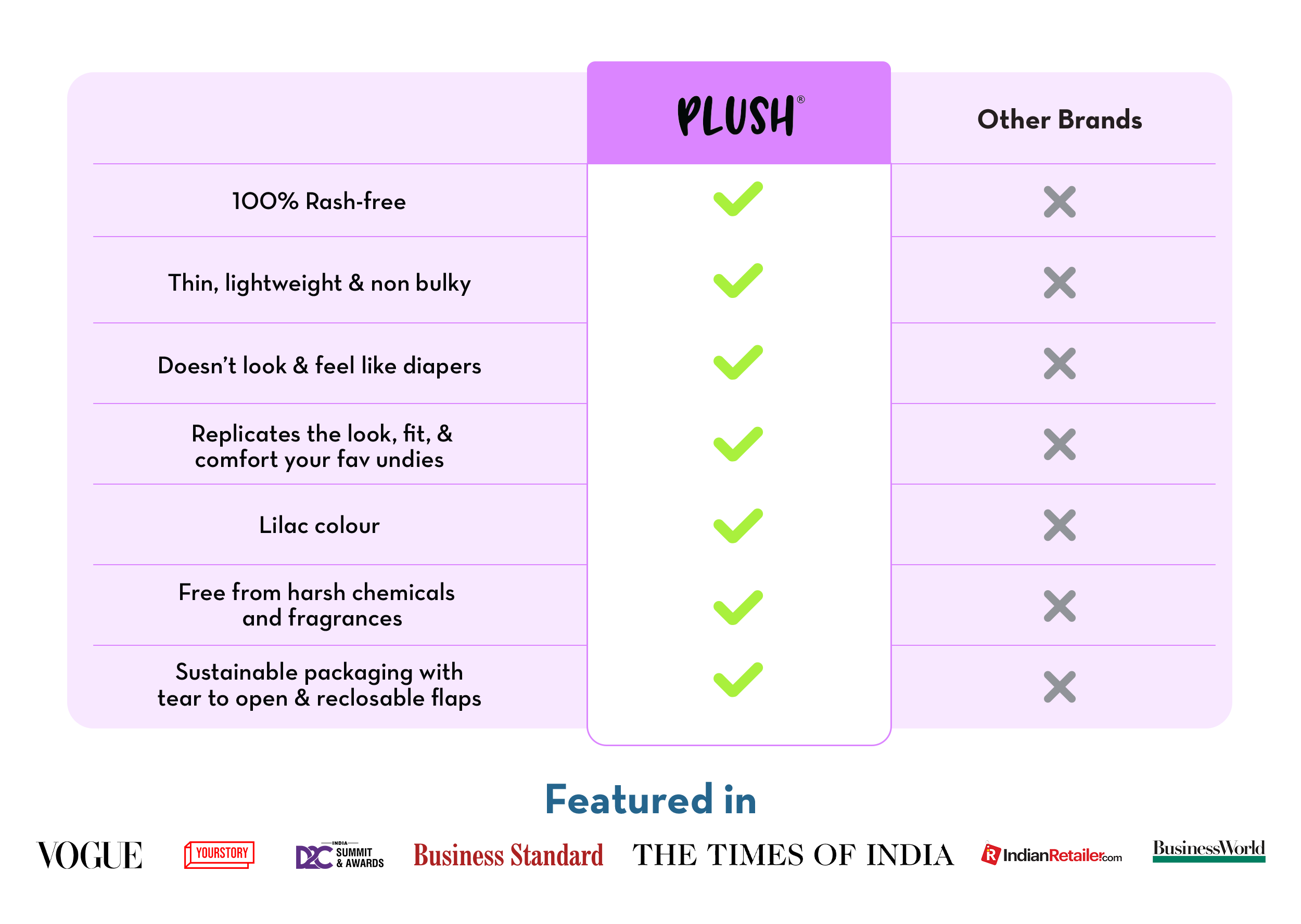 Plush period panties don’t feel like diapers. These are so thin that it feels like I'm wearing my regular underwear even during my periods. No visible panty lines or leakage worries. I’m really happy with Plush period panties.