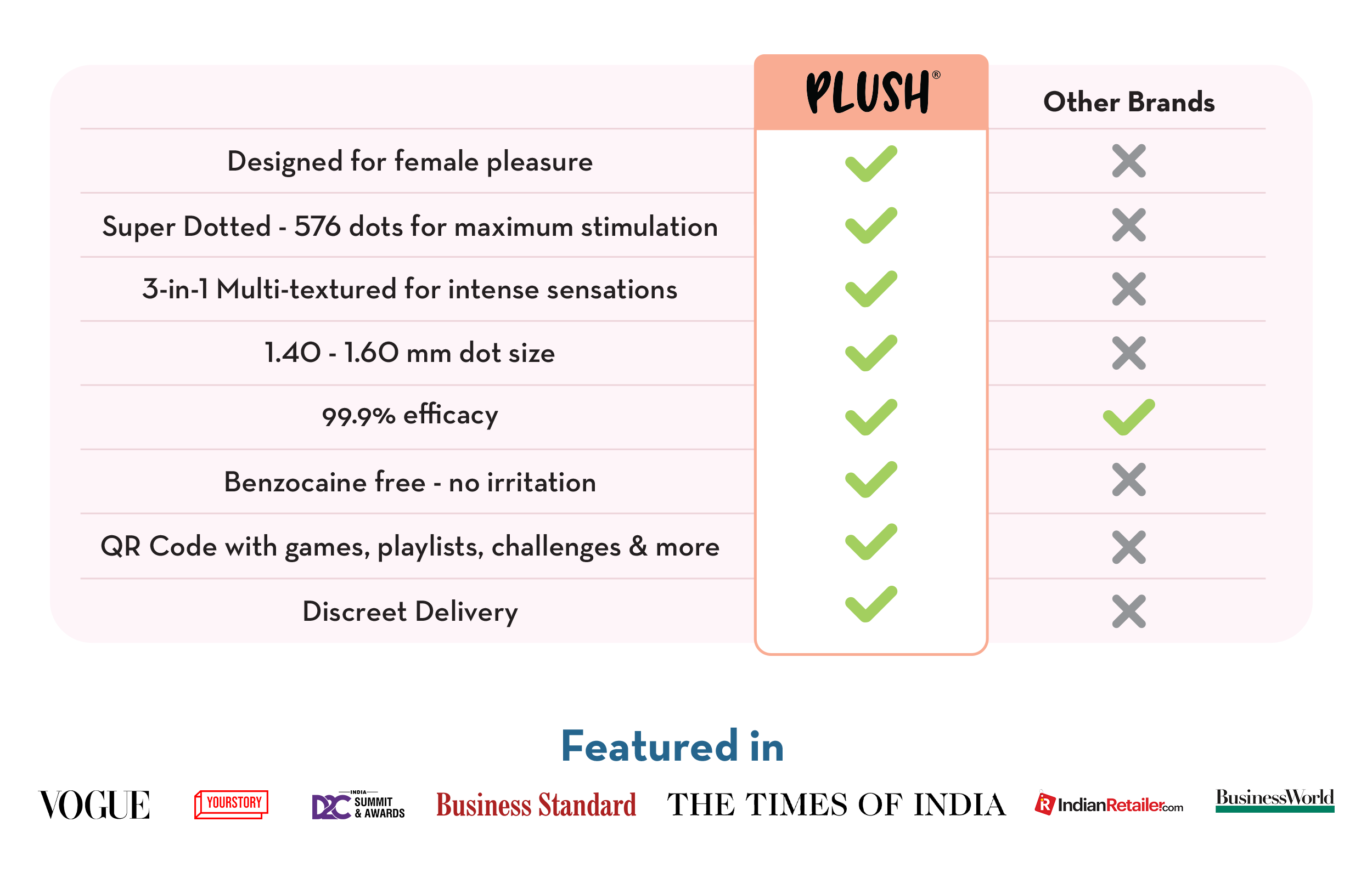 Made from naturally sourced latex. Features an extra-large dotted texture that will send waves of excitement between you & your partner. Our super dotted condoms have 576 higher & wider raised dots, strategically placed to provide maximum stimulation. Compatible with lubes, your hands, fingers, intimate toys, accessories & consent, always. Made with love, they contain zero benzocaine. Designed for women, loved by all.