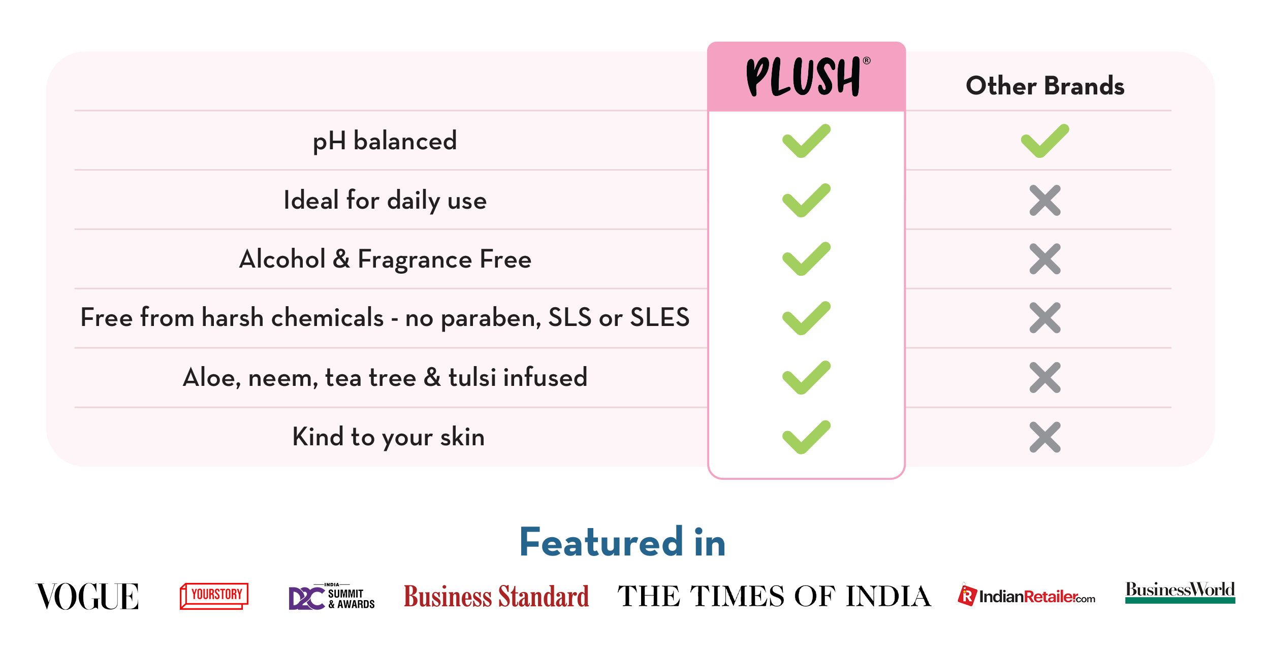 Get rid of your vaginal hygiene woes with this wash! Enriched with Tea Tree oil, Tulsi and Neem extracts which have antimicrobial and antiseptic properties, it gently cleanses and helps maintain freshness. Plush Intimate wash is free of SLS & SLES and is pH balanced to keep you feeling fresh and clean throughout your day.